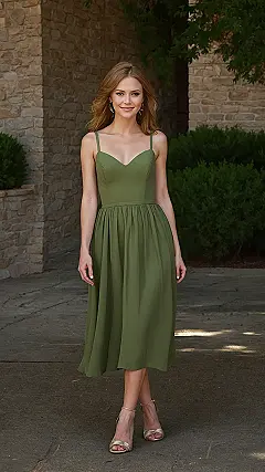 This gorgeous green dress is practically screaming “I’m ready for the wedding photo booth!” Forget all the stress of figuring out what to wear when your cousin announces their big day. This midi length, sweet neckline, and comfy-looking fabric mean you can totally dance the night away without tripping over a super long skirt or feeling like you’re stuck in a fancy straitjacket. Plus, that olive green is just perfect – not too flashy to steal the show from the bride (we all know the rules!), but definitely pretty enough to make you look effortlessly chic while you scope out the dessert table.