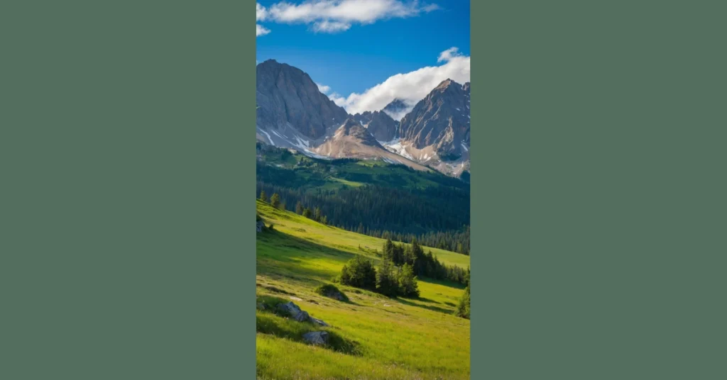 And let’s talk about those rocks! They’re basically daring you to play a game of “don’t touch the water” as you hop across the stream. The way the light hits everything, from the lush green grass to the distant mountain peak, makes you want to pack a snack and just hang out there all day. Even the fallen logs in the water look artistic, not messy, like they’re just part of the forest’s grand design. This picture isn’t just a snapshot; it’s an open invitation to breathe deep and remember how unbelievably cool the world can be.
