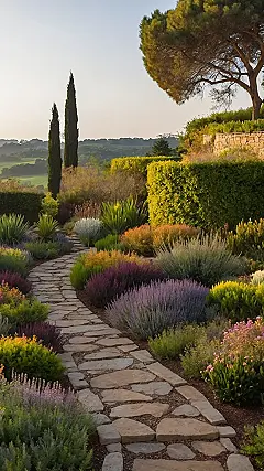 Walking along this wiggly green path in a cottage garden is like being invited into nature’s slightly chaotic, totally amazing living room. Seriously, the plants aren’t just growing; they look like they’re having a massive, sun-soaked party, all squished together but still somehow looking fantastic. You half expect to see that bushy thing on the left doing a little dance or the tall purple ones trying to tell you a joke about photosynthesis. It’s less about neat rows and more about plants deciding, “Hey, let’s all hang out right here!”