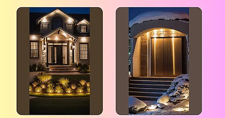 The house in this picture looks like it’s ready to host the coolest December party or at least win the neighborhood light-decorating contest, hands down! Those sparkling lights on the tall trees aren’t just pretty; they’re practically screaming, “Welcome, brave souls, to our cozy abode where hot cocoa flows freely!” With all those fancy outdoor lanterns and the clever little pathway lights, you definitely wouldn’t trip on your way to the door, even if you were trying to sneak back in after curfew. It’s the kind of entrance that makes even the grumpiest grinch crack a tiny smile and maybe even wonder if they left their own porch light on.