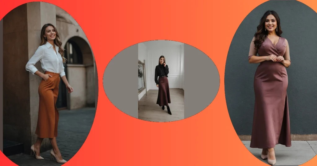 Finding the perfect holiday party outfit can sometimes feel like a mission to the moon, but this look totally nails it! That deep teal satin blouse? It practically screams “I’m festive and fabulous!” without even trying. Paired with that classy beige skirt, it’s a combo that’s elegant enough to impress your aunt, but cool enough to make your friends say, “Where did you get that?” You’ll be ready to snap some awesome selfies and maybe even try to sneak a few extra cookies when no one’s looking.