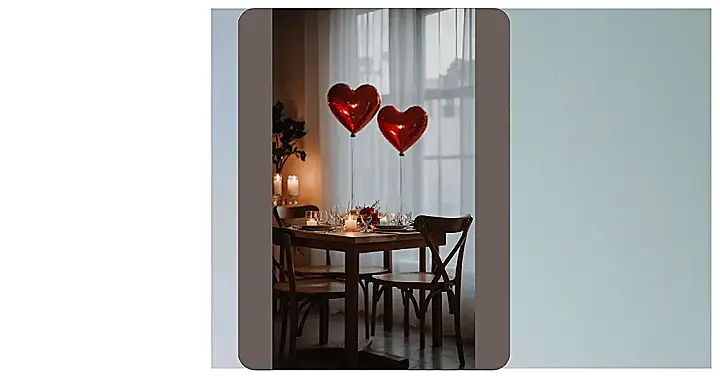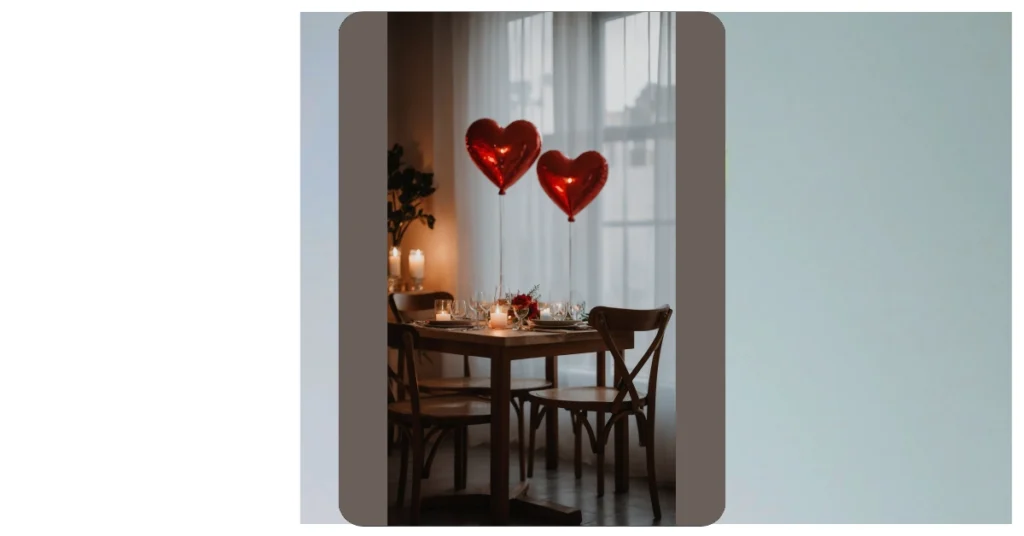 Planning a dinner that screams ‘I actually tried really, really hard to make this special’? This table setup is basically the ultimate playbook for romantic dinner table decor, turning any meal into a major moment. With those gigantic, shiny red heart balloons floating proudly, it’s like they’re shouting “Love is in the air!” (and maybe also “Don’t forget the dessert!”). And the soft glow from all those candles? That’s not just for ambiance; it’s also a secret weapon for making everything look extra magical, even if you accidentally burned the garlic bread a little.