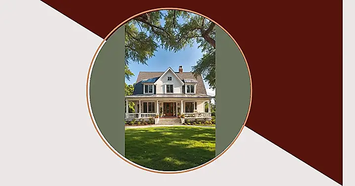 Stepping into this picture-perfect scene, you can practically hear the crickets chirping and the sound of zero alarms going off. This farmhouse design is basically a giant ‘chill out’ sign, complete with a porch so inviting, your phone might even forget to send you notifications. Those huge, ancient trees aren’t just for decoration; they’re like the house’s personal bodyguards, keeping it cool and shady, and probably have a secret stash of wisdom (or really good Wi-Fi, who knows?). It’s the kind of spot where even your homework might suddenly seem less daunting, especially if tackled from a comfy porch swing.