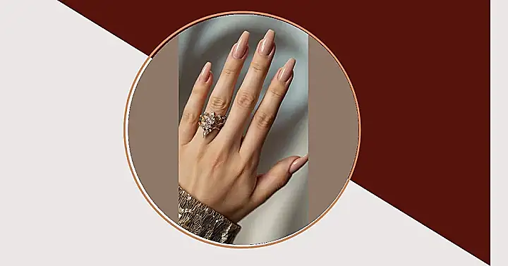 So, when you hear ‘blonde nails’, your brain might do a funny little glitch, like “Wait, do nails have hair now?” But really, it’s about that gorgeous, light, neutral color, kind of like a pale blonde hair shade but for your fingertips! Look at the picture – these nails are exactly that vibe. They’re shiny and have this cool, creamy look that’s totally natural but also polished, making your hands look instantly chic and ready for anything, especially when paired with a sparkly ring that screams main character energy.