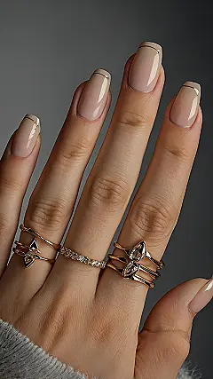 Check out these nails! They’re like the cool, laid-back cousin of a fancy French manicure. We’re calling them ‘blonde nails’ because they’ve got that gorgeous, light creamy color that just screams effortless cool, kinda like perfect blonde highlights but for your fingertips. And see that little gold line? That’s basically the tiny tiara for each nail, making them feel extra special without trying too hard. These aren’t the nails that yell for attention; they’re the ones that whisper, “Hey, I look good, and I know it.”