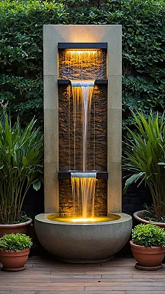Is your backyard wall feeling a little left out, just being… a wall? Give it a glow-up with an amazing outdoor wall fountain! This isn’t just a fancy pipe; it’s a multi-tiered waterfall disco right on your wall, complete with dazzling lights that make the cascading water look like liquid gold. Suddenly, your boring wall transforms into the most popular spot in the garden, making all those quiet shrubs wonder how it got so cool overnight.