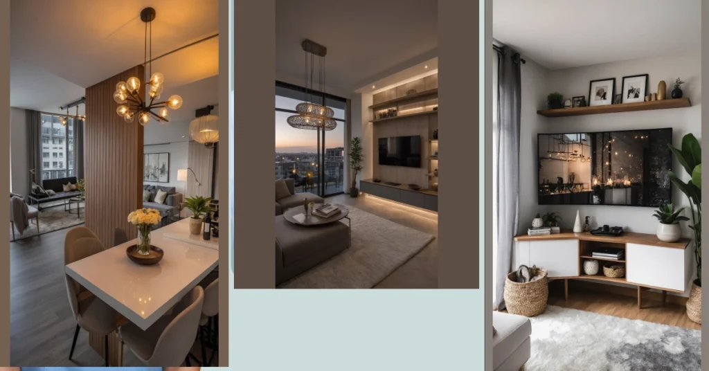 Check out this living room! It’s like something straight out of a fancy magazine, right? You probably think your bedroom looks more like a laundry basket exploded, but this picture actually has some awesome apartment decorating ideas that even us regular folks can steal. See how all the cool lights, from that wild chandelier that looks like giant, glowing bubbles, to the hidden strips making the shelves pop, create such a cozy and expensive vibe? It’s like the room got a mood ring and it’s always set to ‘chill goals.’ Getting your own apartment to feel this magical doesn’t mean you need a wizard, just some clever lighting to banish those boring, overhead single-bulb blues!