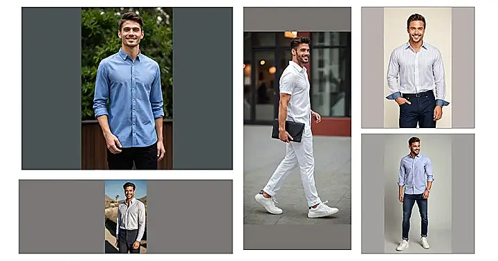 Think about it: this shirt isn’t just for looking good; it’s a multi-tasker. It’s polished enough that your parents would approve, but relaxed enough that you won’t feel like you’re wearing a costume. Plus, with those sleeves rolled up and sunglasses on, he looks ready for anything – maybe he’s off to grab a smoothie, ace a pop quiz, or simply enjoy the sunshine without squinting. It’s a great example of how a simple shirt outfit can give you that extra boost of confidence, helping you tackle your day with a smile, just like our friend here who seems pretty happy with his fashion choices!