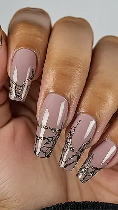 These gorgeous nails totally nail the “coffin” trend without being spooky at all! Forget thinking about anything grim; this shape, with its cool, squared-off tip, is all about bringing drama and elegance to your fingertips. The natural pink base makes them look polished and ready for anything, whether you’re acing a test or just scrolling through your feed. It’s like having tiny, stylish canvases right on your hands that are way more fashion-forward than frightening.