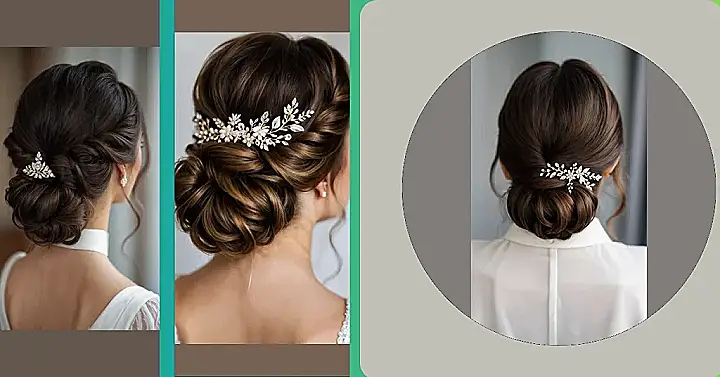 And check out that bling! This isn’t some tiara that screams “I’m a princess and you know it!” from across the room. Instead, it’s a subtle sparkle, perfectly nestled into the bun like a tiny, elegant secret. It’s like the perfect accessory that says, “I’m fancy, but I’m also practical and won’t get tangled in your dance moves.” It adds just the right amount of “wow” without making your hair look like it’s trying too hard, which, for a minimalist wedding bun, is basically the golden rule. Plus, it keeps everything tidy so you can focus on not tripping down the aisle!
