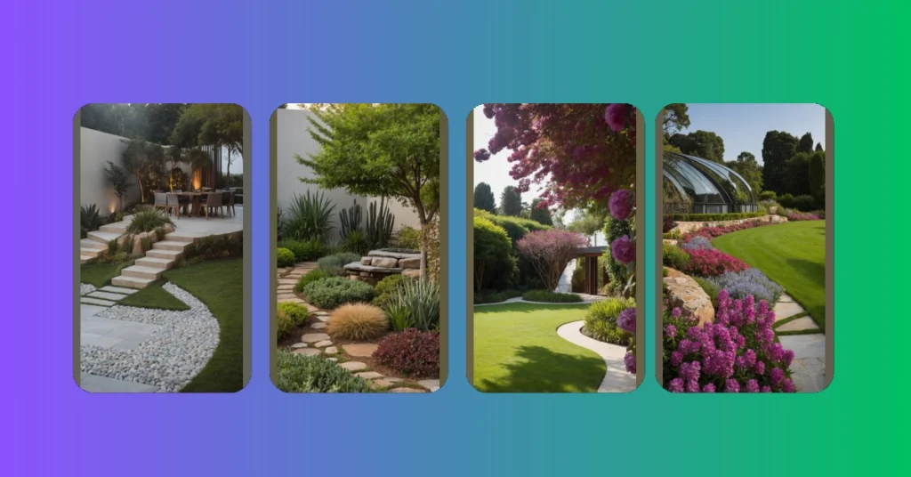 Take a peek at those vibrant pink flowers cascading down – they’re like nature’s best Instagram filter, making everything look extra dreamy without even trying. That smaller, perfectly shaped tree in the middle isn’t just standing there; it’s practically posing, knowing it’s the star of the show in this minimalist masterpiece. It almost makes you want to cancel all your plans, grab a lemonade, and just chill out on that pristine grass, pretending you live in a magazine. Who needs a complicated yard when you can have one that basically smiles at you?