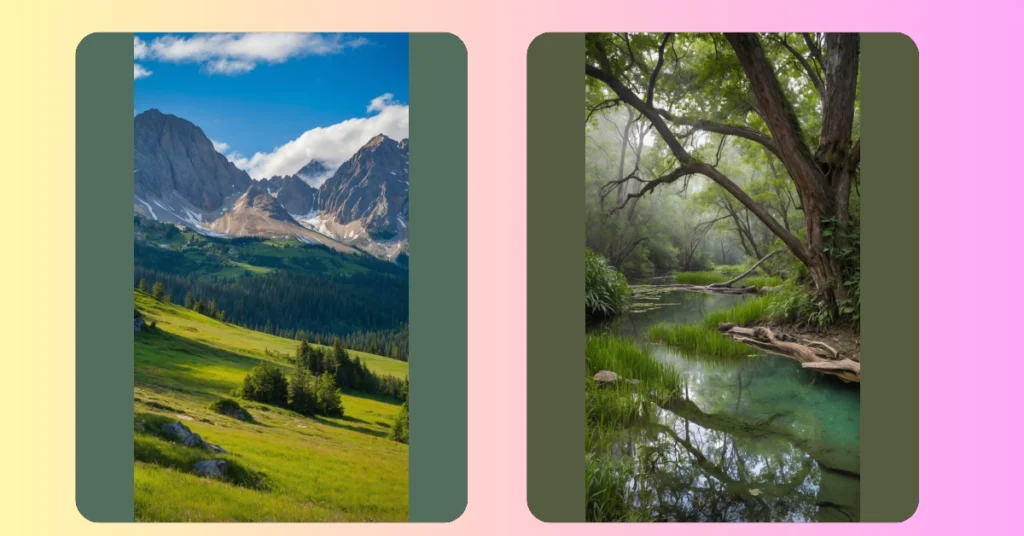 And let’s talk about those rocks! They’re basically daring you to play a game of “don’t touch the water” as you hop across the stream. The way the light hits everything, from the lush green grass to the distant mountain peak, makes you want to pack a snack and just hang out there all day. Even the fallen logs in the water look artistic, not messy, like they’re just part of the forest’s grand design. This picture isn’t just a snapshot; it’s an open invitation to breathe deep and remember how unbelievably cool the world can be.