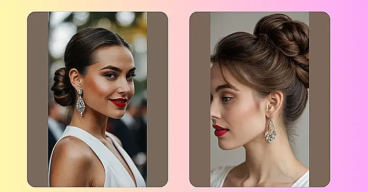 We all know the struggle of trying to get our hair to cooperate, especially when you want to look effortlessly chic without actually putting in zero effort. But this bun proves that a little smoothing and pinning can go a long way, transforming a simple style into something show-stopping. It’s like, one minute you’re scrolling through TikTok in your sweats, and the next you’ve got a Sofia Richie-inspired bun that screams “I woke up like this, but also I’m totally ready for my close-up!” Plus, with all that hair neatly tucked away, you can totally show off some seriously sparkly earrings, just like the ones in the picture. Talk about a total glow-up!