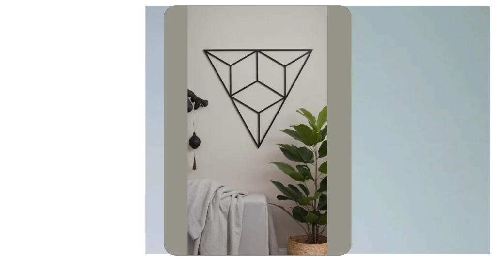 Adding cool room wall decor like this triangular wonder is like giving your space a secret handshake – it just makes everything click. Notice how it hangs out with that leafy green plant, looking totally chill and stylish? It proves that you don’t need a total room makeover to make a big statement. Just one piece of unique art can transform your corner into the ultimate hangout spot, making all your friends wish their walls were this cleverly decorated.