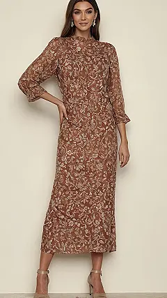This fabulous midi dress totally gets it. You know those days when you want to look super put-together but also comfortable enough to, like, actually breathe? That’s where midi dresses swoop in to save the day! This gorgeous brown one, rocking its fancy floral pattern and three-quarter sleeves, is basically saying, “I’m classy, but I also know how to have fun.” It’s the perfect length, not too short where you’re constantly tugging it down, and not so long you’re tripping over it trying to look cool. It’s the fashion equivalent of finding a snack you love that’s also secretly healthy.