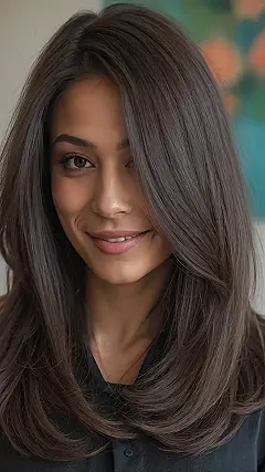 What’s really fun about having hair this straight and polished is how low-key it is, giving you more time for important things, like perfecting your snack game or deciding which filter to use. There’s no elaborate taming required; just a simple shake and you’re good to go, looking effortlessly put-together like the person in the picture. It proves that sometimes, the simplest hairstyles are the ones that truly shine, letting your awesome personality do all the talking instead of your unruly hair.