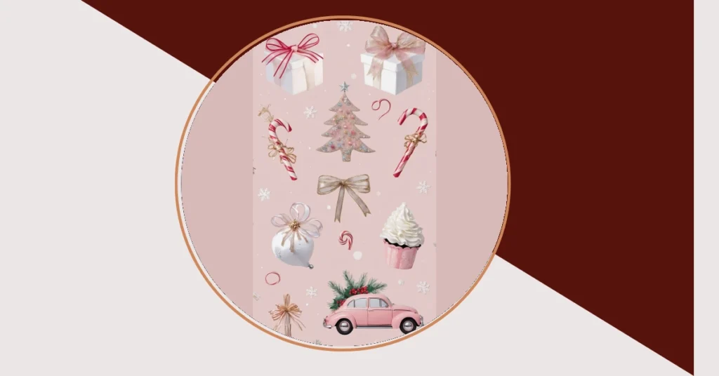 Look closely and you’ll spot all the super fun details that make this wallpaper pop! There’s a perfectly wrapped gift, which we can only assume holds something amazing and sparkly, right? And check out that adorable pink bucket overflowing with tiny Santa and snowman ornaments – it’s like a party in a pot! The little snowflakes floating around everything add that extra sprinkle of magic, making your screen feel like its own cozy, pink snowglobe. This isn’t just a simple background; it’s a whole vibe for your ultimate Christmas, guaranteed to make your phone sparkle and spread cheer every time you look at it. Prepare for everyone to ask where you found this awesome wallpaper!