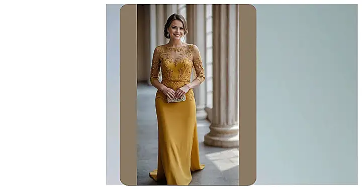 Who knew mustard yellow could look this glamorous? She’s clearly mastered the art of looking effortlessly chic, clutching that sparkly bag like it holds the winning lottery ticket (or at least her phone for epic dance floor selfies). This look proves you don’t need a tiara to feel like royalty, just a killer dress that makes you want to sashay past those grand columns like it’s your own personal runway. So next time a wedding invite lands in your lap, remember this golden rule: be bold, be bright, and be ready to have more fun than Uncle Barry after his third glass of punch!