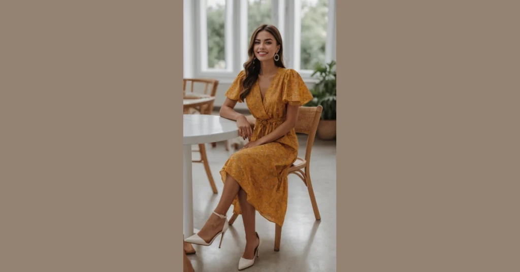 Check out this amazing sunny yellow dress! With its cute floral pattern and flowy sleeves, it practically screams “basket of snacks and a grassy hill!” It gives off total “picnic royalty” vibes, making you want to grab your friends, some lemonade, and find the perfect spot under a big oak tree. This outfit definitely brings all the sunshine, making you feel ready for a perfect day out, no matter where your snacks end up being laid out.