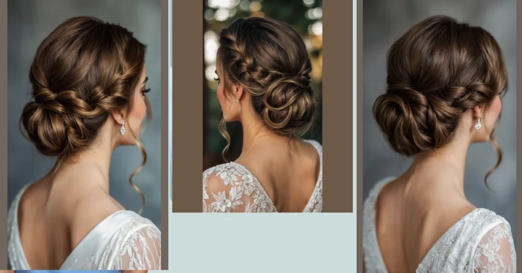 Getting ready for a wedding as a bridesmaid means looking totally fabulous, but also being ready for anything – like chasing a runaway flower girl or dramatically catching the bouquet. This gorgeous updo, with its fancy braids artfully woven into a stylish bun, is basically your hair’s superhero costume for the big day! It keeps every strand perfectly in place, so you can dance like nobody’s watching without ending up with hair stuck to your lip gloss, all while showing off those sparkly earrings.