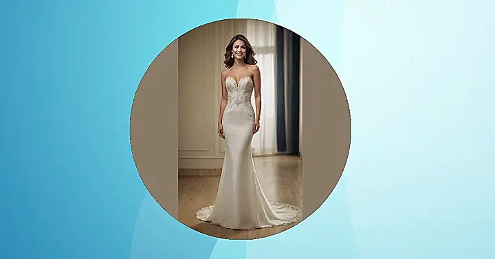Checking out this picture, you can practically feel the joy radiating from her! That dress is a total showstopper, with its gorgeous lace and sleek silhouette, making her look like she just stepped out of a fairytale. But here’s the fun twist: what if this stunning gown wasn’t just pretty, but also made from super soft, organic cotton? It’s like wearing your comfiest, favorite shirt but leveled up to ‘bridal couture’ – meaning you can totally bust a move on the dance floor without worrying about anything scratchy cramping your style (or your epic wedding photos!).