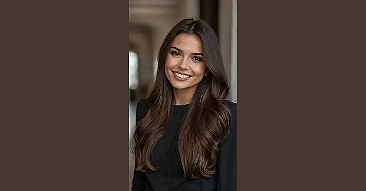 That gorgeous cascade of brown just perfectly frames that smile, making the whole picture look ready for a magazine cover or at least your profile pic game level up tenfold. It’s the kind of hair that probably smells like happiness and fresh baked cookies, adding extra points to whoever is rocking it. Just look at that healthy bounce – it’s almost showing off how great rich brunette hair can be, making the rest of us slightly jealous in the best way possible.