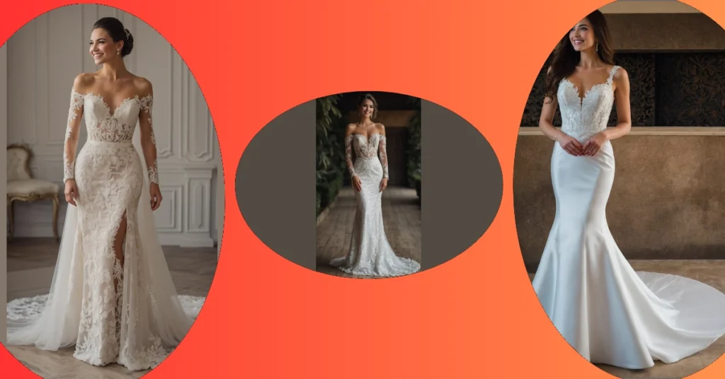 This dress just screams “main character energy” doesn’t it? Look at the intricate lace, the elegant long sleeves, and that seriously cool slit showing just enough leg to make you feel like you could walk a red carpet instead of an aisle. To get that perfectly sculpted shape and make you look like you just stepped out of a fashion magazine, many wedding dresses, including ones that give off this vibe, secretly have a little corset magic hiding underneath. It’s like your personal invisible superpower, giving you that ‘oomph’ without anyone even knowing!