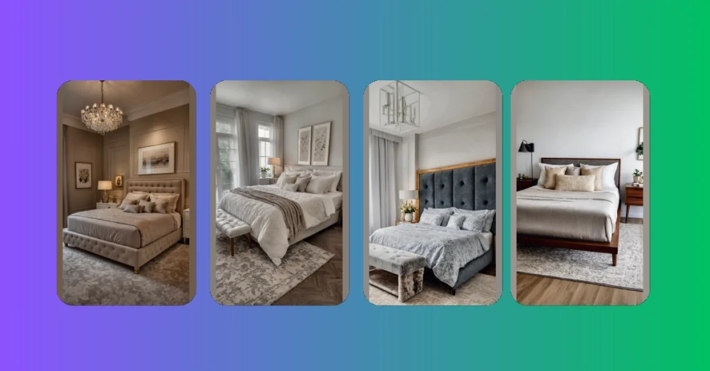And let’s not forget the details! Those sparkly pillows aren’t just for show; they’re practically winking at you, inviting you into the land of ultimate comfort. The fancy chandelier looks like it belongs in a five-star hotel, and those sleek side tables? Perfect for holding your phone (charging, obviously), a good book, or maybe just a glass of water for when you finally decide to hydrate after a 12-hour sleep marathon. This whole setup screams “I have my life together, even if I’m just watching cat videos in bed.” It’s definitely a room that’s ready to go from “meh” to “magnificent” without you lifting a finger… well, maybe just to hit snooze.