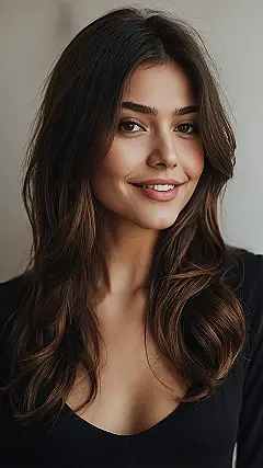 Looking at this picture, you can practically hear this amazing hair saying, “I woke up like this, fabulous!” Her gorgeous dark brown locks aren’t just sitting there; they’re practically dancing around her face, all thanks to a super smart layered cut. Think of layers as giving your hair a secret superpower to bounce and move, instead of just hanging flat like a soggy noodle. It’s like each section gets its own little stage to shine, making everything look full of life and ready for a good hair flip, even if it’s just for the mirror!