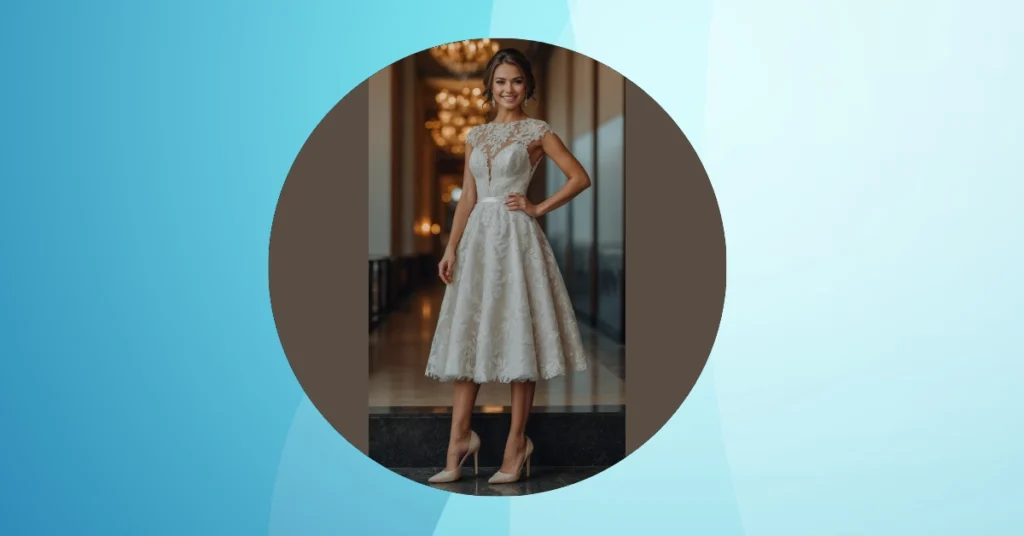 Spotted: The ultimate multi-tasker of the dress world! This white lace beauty could totally walk down an aisle, then magically appear at your homecoming dance an hour later and still steal the show. Forget those super long gowns that make you feel like you’re dragging a duvet cover; this knee-length stunner means you can actually, you know, walk and dance without fear of tripping or needing a personal dress-fluffer. It’s chic, it’s comfy, and let’s be real, it practically screams, “I came, I saw, I effortlessly conquered the fashion game!”