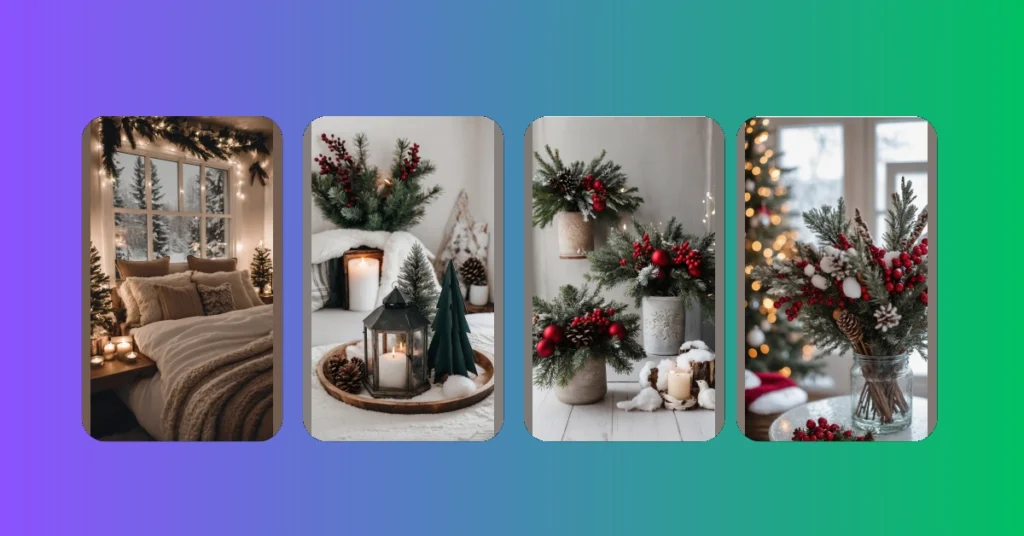 And once your centerpiece is looking all fabulous, why stop there? The whole point of ‘Diy winter room decor’ is to make your space so comfy you actually want to spend time there, instead of just scrolling through TikTok under your duvet. See how the room in the picture has that soft glow from the Christmas tree lights and a super inviting armchair with a squishy red pillow? Even if you don’t have a giant tree, a string of fairy lights draped around your bookshelf or window can make your room feel like a winter wonderland. Toss an extra blanket on your bed, maybe some fuzzy socks, and you’ve basically built your own personal winter retreat. No need to hibernate until spring, just DIY your way to peak coziness!