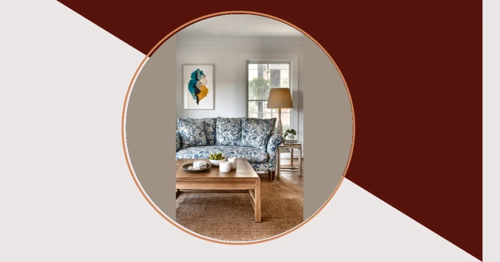 This living room is practically begging you to kick back and relax, isn’t it? That beautiful blue and white patterned sofa looks so inviting, you might just get lost in its leafy design – perfect for a game of “spot the hidden squirrel” or simply blending in for an epic nap. It really shows how clever home decorating can turn a regular room into your personal cozy escape. The abstract art above it adds a splash of cool colors, making the whole wall pop without trying too hard, like a good friend who always brings the fun.