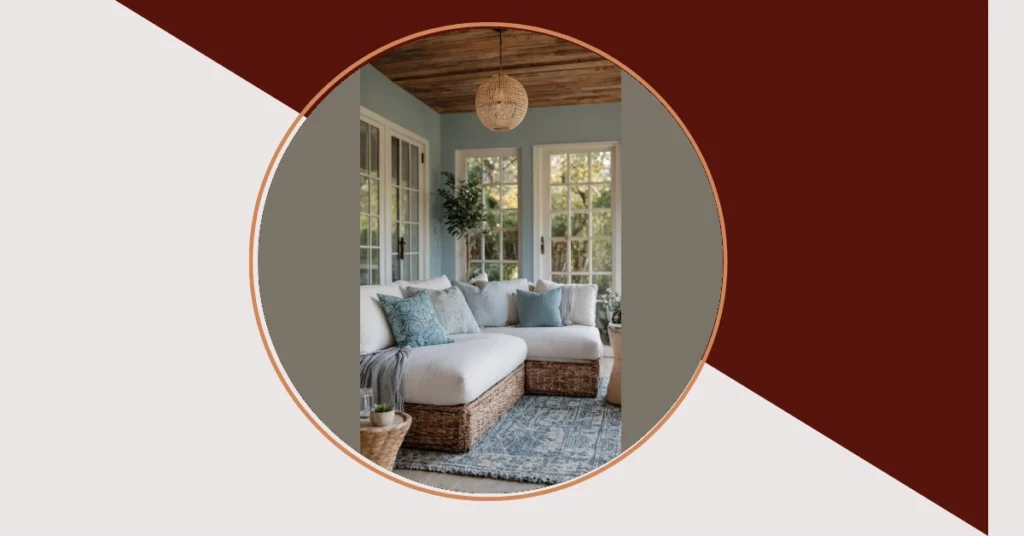 And let’s talk about that table – solid wood, ready for epic board game nights or, you know, just holding your pizza. Those comfy-looking wicker chairs scream ‘stay awhile and enjoy the breeze.’ This whole setup just radiates chill vibes, proving that lake house decor is all about keeping things natural, comfy, and seriously stunning without trying too hard. It’s the kind of place where you could spill a little juice, and nobody would even care because they’re too busy being mesmerized by the view. Talk about living your best lake-side life!