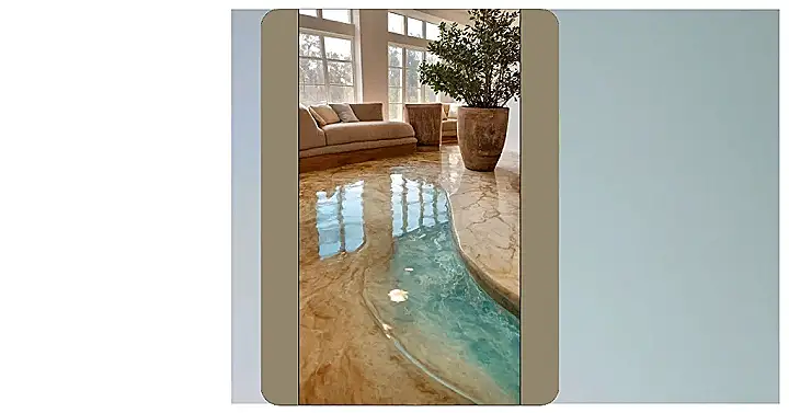 This incredible, water-like effect is actually thanks to something called epoxy flooring. Think of it like a super-durable, glossy coat that can be customized to look like anything you can dream up, even a swirling river or sandy dunes right in your house! Not only does it look amazing and completely unique, but it’s also tough enough to handle all your daily adventures, and it’s super easy to clean up any accidental spills. Who knew your floor could be both a stunning piece of art and a total superhero against messes at the same time?