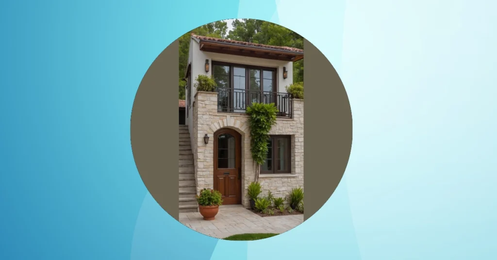 And just when you think you’ve seen it all, there’s that super elegant balcony peeking out! It’s not just some plain railing; those swirly, intricate designs look like they belong on a castle, giving us major unique house design vibes. You can almost imagine someone dramatically stepping out onto it, waving to their adoring fans (or maybe just yelling for their pizza delivery). This place isn’t just a home; it’s a statement piece, probably built for someone who appreciates a good glow-up and maybe has a secret obsession with fancy doors and dramatic entrances. No plain ol’ doorbell for this place, I bet it has a gong!