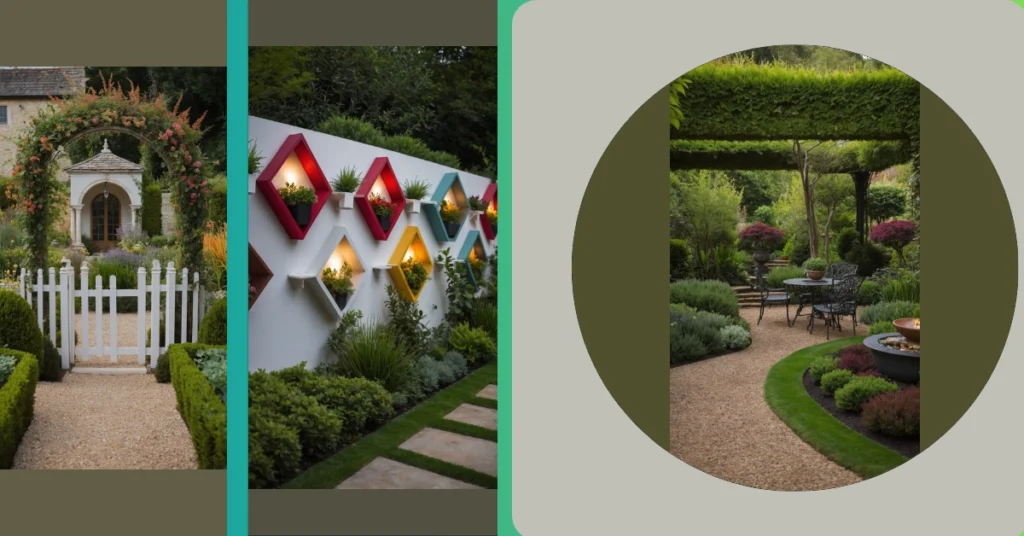Beyond the superstar wall, the entire outdoor space continues the good vibes. Lush green plants spill out from the base, creating a soft, welcoming feel, while neat stepping stones practically invite you to stroll through and explore. This isn’t your grandma’s garden; it’s a modern masterpiece of outdoor gardens design that combines art, light, and nature into one seriously cool hangout spot. It shows how a little creativity can turn any plain old yard into a vibrant, friendly place perfect for chilling with friends or just enjoying some awesome greenery.