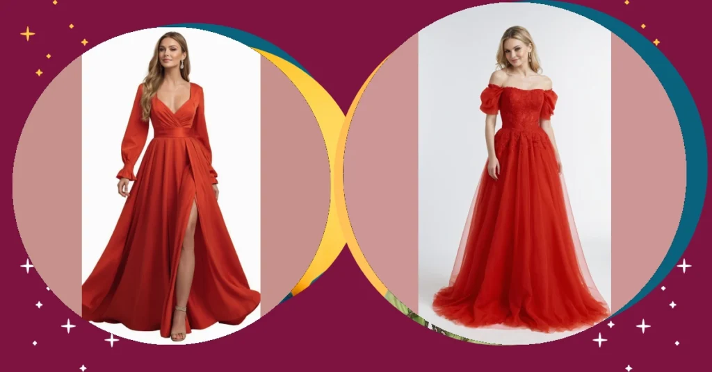 This stunning red dress is basically a mic drop moment for any big event, especially if you’re thinking about shaking up wedding traditions. Choosing a color this bold and gorgeous means you’re not just walking down an aisle; you’re making an entrance that says, “Yes, I’m fabulous, and no, I’m not afraid to completely outshine the wedding cake.” This deep, rich red isn’t playing around – it’s all about glamour, confidence, and making sure every single photo pops with pure personality. Forget blending in; this dress is here to make a statement louder than your best friend’s terrible karaoke rendition.