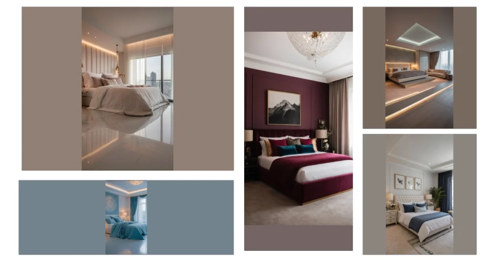 And after you’re done admiring the wall, get ready to flop onto that bed! Seriously, with that many plush pillows and a blanket so fluffy you might disappear into it, this bed is practically begging for a mega-nap or an epic movie marathon. The warm, soft glow from the lamps and that super cool chandelier just melts into the room’s deep colors, making everything feel extra inviting and dreamy. It’s the kind of spot where even your phone would probably want to turn on “do not disturb” and just soak up the relaxing atmosphere.