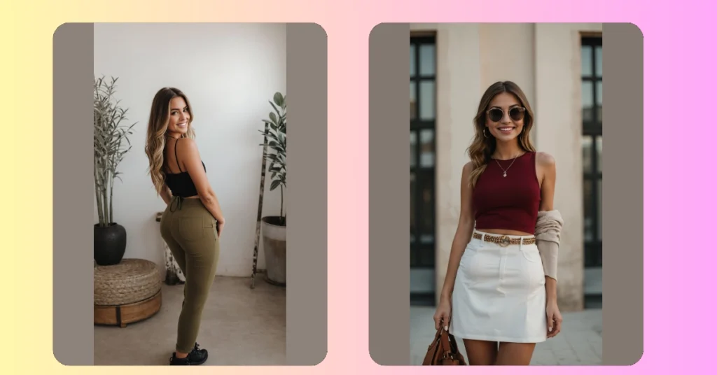 Forget complicated outfits; sometimes the simplest pieces are the biggest style heroes! This tank top outfit totally nails that “I woke up like this, but also kinda awesome” look. See how the tank is tied at the front? That little knot turns a basic top into a fashion statement, making it look super intentional and stylish without you having to spend hours figuring it out. It’s the perfect example of how a simple tank can be dressed up to look chic, whether you’re off to a friend’s house or just conquering your day.