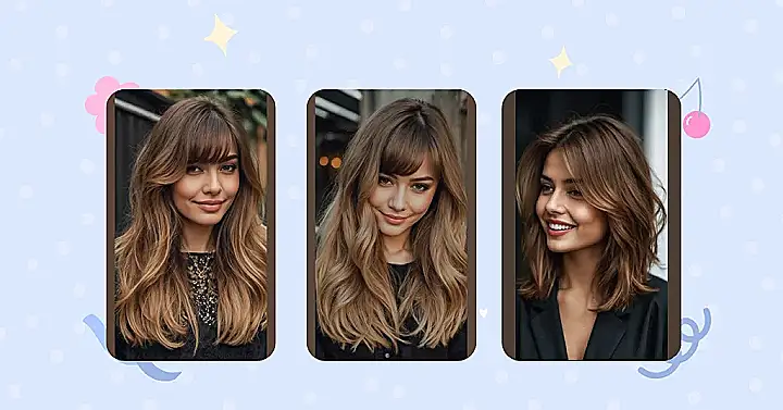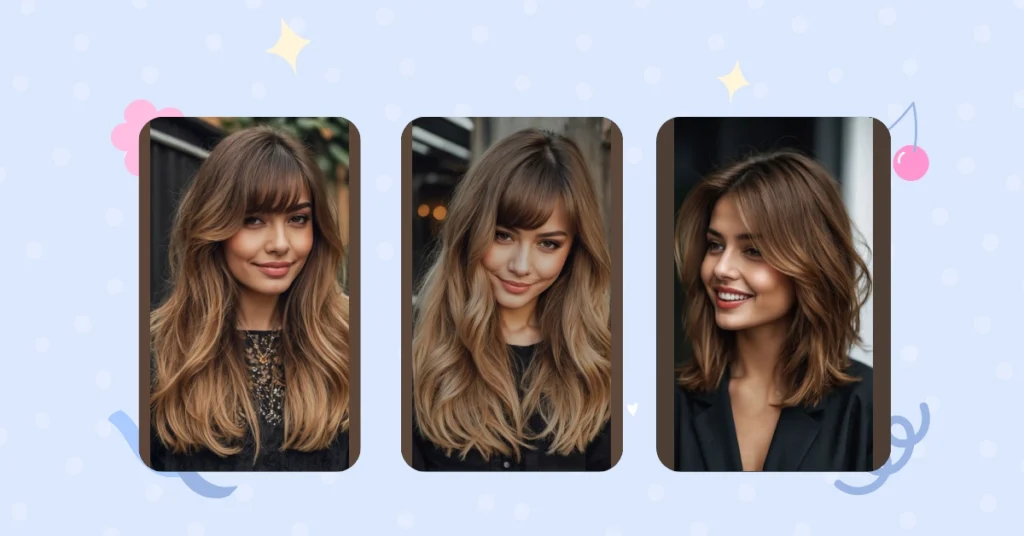 This gorgeous hairstyle shows off exactly why a layered cut is basically a hair superpower! See how her hair isn’t just one boring length, but has all these cool pieces that frame her face and give it bounce? It’s like her hair decided to have a party and invited all its friends to join in the fun, creating that amazing volume and movement. Plus, those perfectly styled bangs are totally pulling their weight, making her look effortlessly chic while still being super friendly with that warm smile. This isn’t just hair; it’s a personality statement saying, “Yep, I woke up like this, and it looks fabulous!”