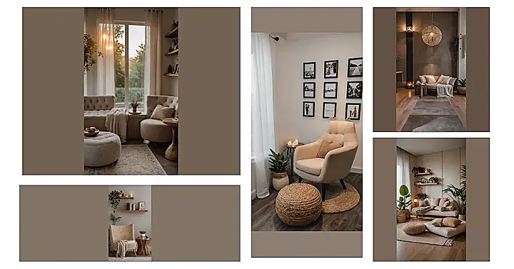This isn’t just any old corner; it’s a designated sanctuary for maximum laziness (in the best possible way). With that soft, warm light and the calm green plants, it feels like the whole room is telling you to just breathe and maybe not think about anything too hard. It’s the kind of spot where stress wouldn’t dare show its face, probably because it’s too busy dealing with rush hour traffic or figuring out TikTok dances. Seriously, add a fluffy blanket like the one there, and you’ve got yourself a personal escape pod from the universe’s general chaos.