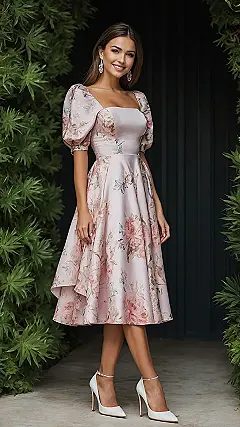 So, you’ve got a wedding invite and you’re wondering what to wear that says “I’m here to celebrate” but not “I’m here to audition for a Bridgerton remake” with those fantastic puff sleeves? This gorgeous pink floral dress is basically your fashion superhero. It screams elegance without whispering, “I can’t dance because this dress is too tight!” Plus, with those beautiful blooms, you’ll practically blend in with the fancy centerpieces, which is great for sneaking extra appetizers unnoticed. Who knew being a wallflower could look this fabulous?