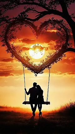 This picture perfectly captures that “totally in love and not a care in the world” vibe, right? You’ve got this awesome couple just swinging under a giant heart-shaped vine, probably ignoring their phones for once and soaking in that epic sunset. It’s the kind of scene that makes you think, “Where can I get one of those swings and a sunset like that?” It’s pretty much the definition of a chill date night, making it the coolest wallpaper for anyone who loves a bit of romance without all the cheesy drama.