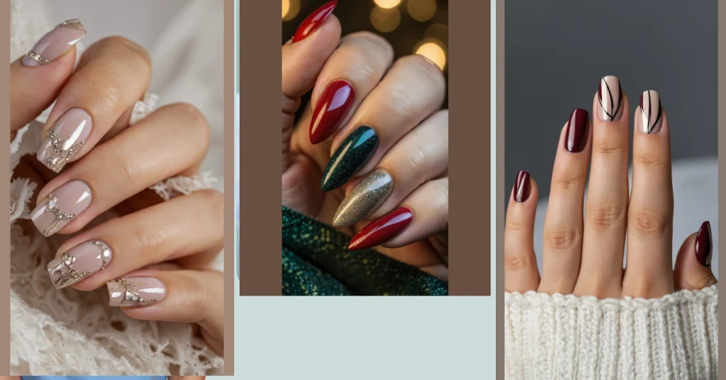 So, how do they get that amazing glow that makes you feel like you’ve got tiny, sparkling alien eyes on your fingertips? It’s not magic, but it’s pretty close: tiny metallic particles in the polish that a magnet pushes around to create that dazzling, shifty line! With those vibrant reds, dazzling green, and sparkling gold shown off here, you’d be totally sleighing the style game at any holiday party or just making your regular school day feel extra special. These aren’t just nails; they’re tiny, glittering mood boosters, ready to add some sparkle to any day!