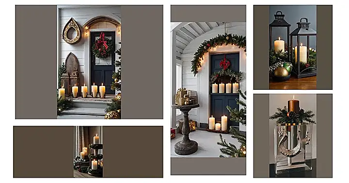 Imagine this: It’s Christmas Eve, and you’re walking up to a house that looks like it belongs in a holiday movie. The porch is decked out with twinkling lights, a gorgeous wreath practically bursting with festive cheer, and – wait for it – four massive candles glowing like little beacons of warmth and holiday spirit! They’re all nestled in these cool, rustic candle holders, which look totally amazing. You almost expect Santa to pop out from behind one of the lanterns! It’s so cozy and inviting, you can practically smell the gingerbread cookies baking inside.