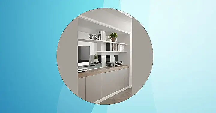 This living room is like a breath of fresh air! The white shelves are super clean and organized, and the grey cabinets at the bottom look like they’re straight out of a design magazine. It’s all about keeping things simple, but with a touch of elegance. The plants add a pop of color and life, and the TV is the perfect way to unwind after a long day. You know you’re jealous of this room right now, it’s just too cool!