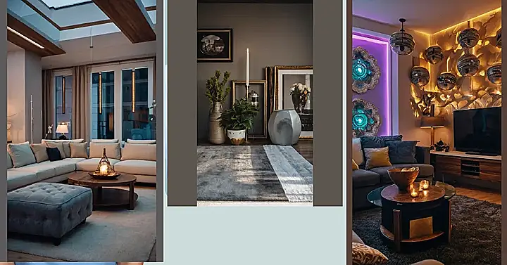 It’s all about the details, though. Those candles on the coffee table add a touch of warmth and sophistication, and that big, beautiful rug makes the whole room feel cozy and inviting. You could totally imagine yourself curled up on that couch with a good book or a movie marathon, right? Who needs a disco ball when you have a room full of glamorous orbs, am I right?
