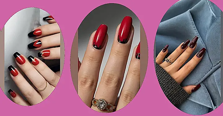Okay, so Valentine’s Day is coming, and you’re probably trying to figure out how to up your game, right? Well, check out these nails! They’re like the cool, edgy version of those cheesy heart-shaped candies. Forget drawing a basic heart; these designs are like abstract art, but with black and red, the perfect colours for love. These designs show you can be romantic without being all cringey about it.