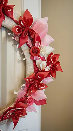 So, you wanna impress your crush with some serious Valentine’s vibes? Forget just tacking up a paper heart – this heart-shaped wreath on the door says, “I’m fancy… but also, I clearly spent some time making this!” It’s like the floral equivalent of writing a really good essay, showing effort and style. Plus, a door decoration like this is a total conversation starter before they even set foot inside.