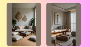 The rustic coffee table and comfy pillows scattered around the space add a cozy touch that makes you want to curl up with a good book and just relax. You’ve got the natural elements, the sleek modern furniture, and a hint of zen—that’s what makes this space truly classy. And let’s be honest, who wouldn’t love to chill out in a space that screams “I’m cool and collected, even when life throws me a curveball!”